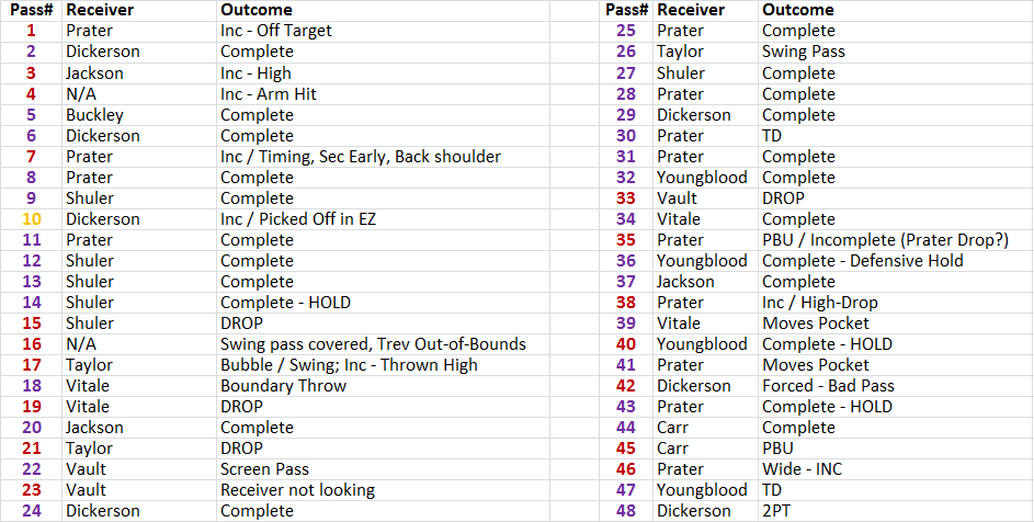 A couple of interesting observations from rewatching last week’s game (yes, I’m rewatching these awful games to try to understand our offense outside the emotional tornado that is the live broadcast):